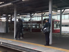 京急蒲田のホームに上がり、ホームでカメラを構えているファンの人数からまだ下って来ていないと判断。比較的すいていた浦賀方ホーム端で待ち構える事にしました。