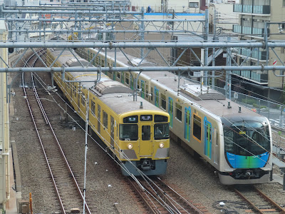 デッキからはガラス越しに西武電車が見られます。あっ黄色い西武電車と40000系だ!!